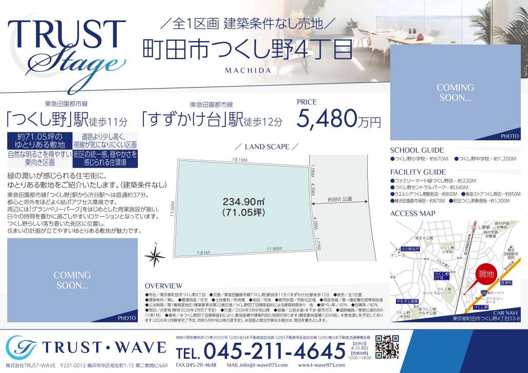 3路線利用可能な「長津田」駅徒歩8分約57坪